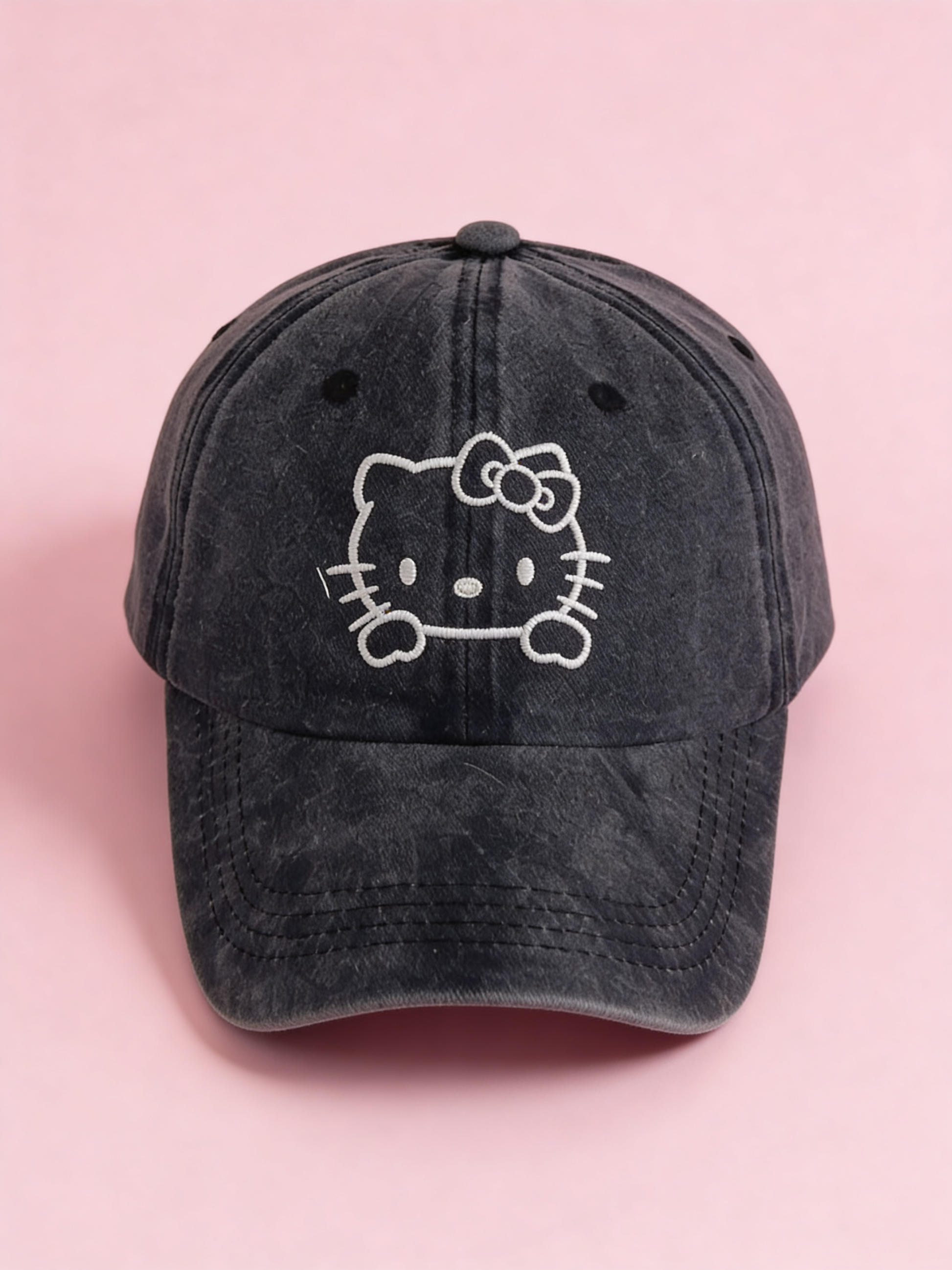 Stylish black cap with minimalist embroidery of Hello Kitty is the perfect accessory for everyday outfits. Thanks to its universal cut and adjustable fastening, it fits every head perfectly. The striking yet elegant embroidery of the beloved cat adds a unique kawaii style to the cap while remaining tasteful and discreet – perfect for fans of Hello Kitty and streetwear fashion.