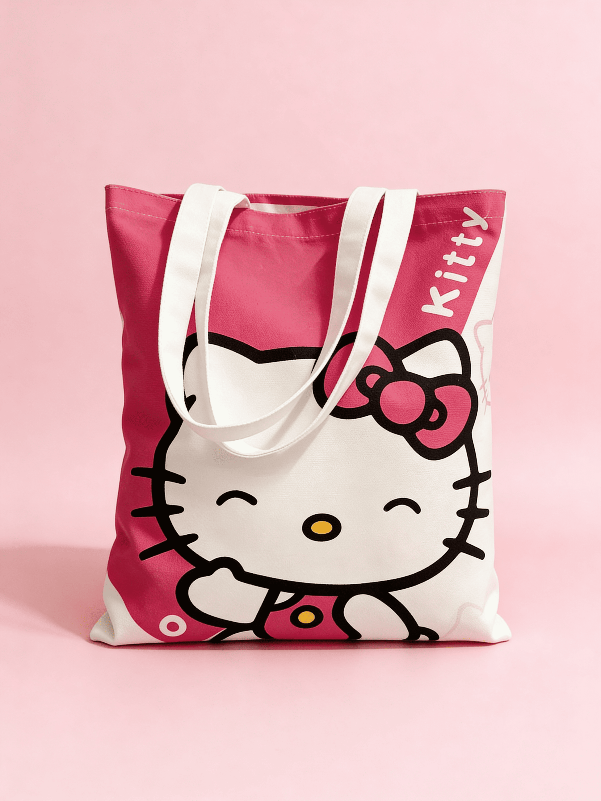 Stylish Hello Kitty canvas bag with a cute design is perfect for everyday use. Ideal for shopping, books, or accessories. Lightweight, spacious, and comfortable to carry thanks to the sturdy handles. A great gift for Hello Kitty lovers!